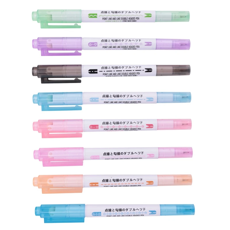 Набор ручек изогнутых с двумя наконечниками, линейные цветные ручки для дневника, бумажные спутники, гелевые ручки 8 цветов, форма гелевых ручек, 8 шт.