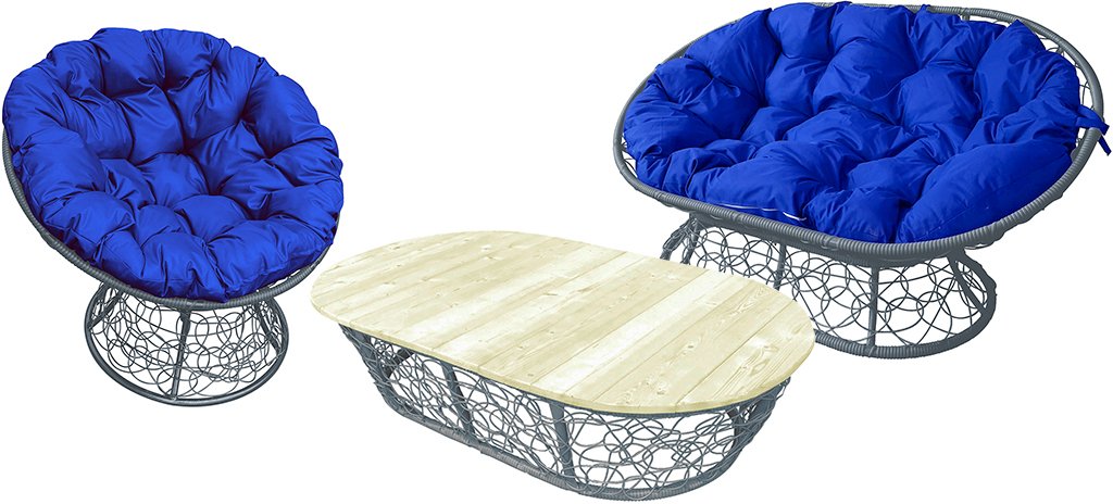 Набор садовой мебели M-Group Мамасан, Папасан и стол 12140310 (серый ротанг/синяя подушка)