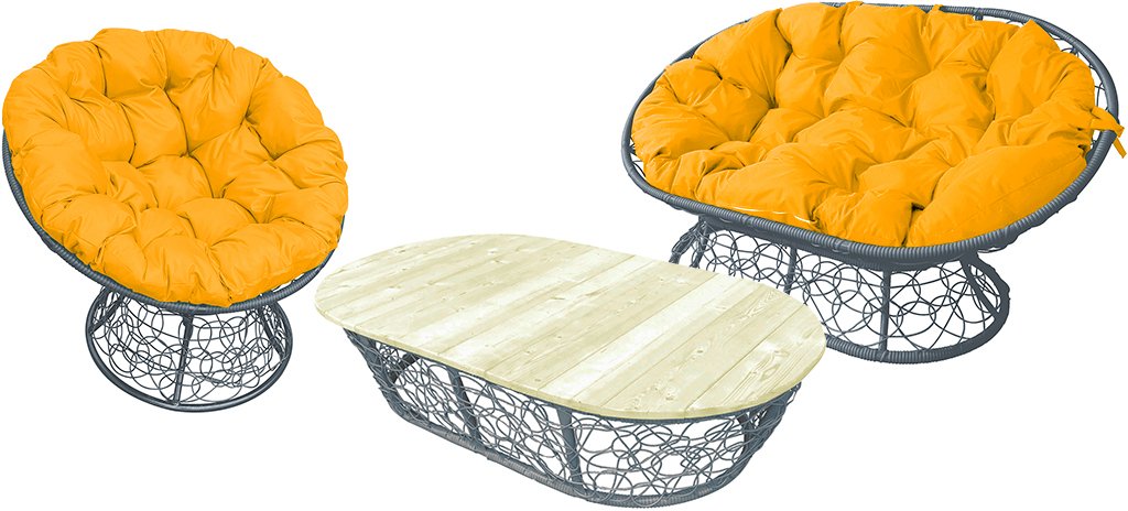 Набор садовой мебели M-Group Мамасан, Папасан и стол 12140311 (серый ротанг/желтая подушка)