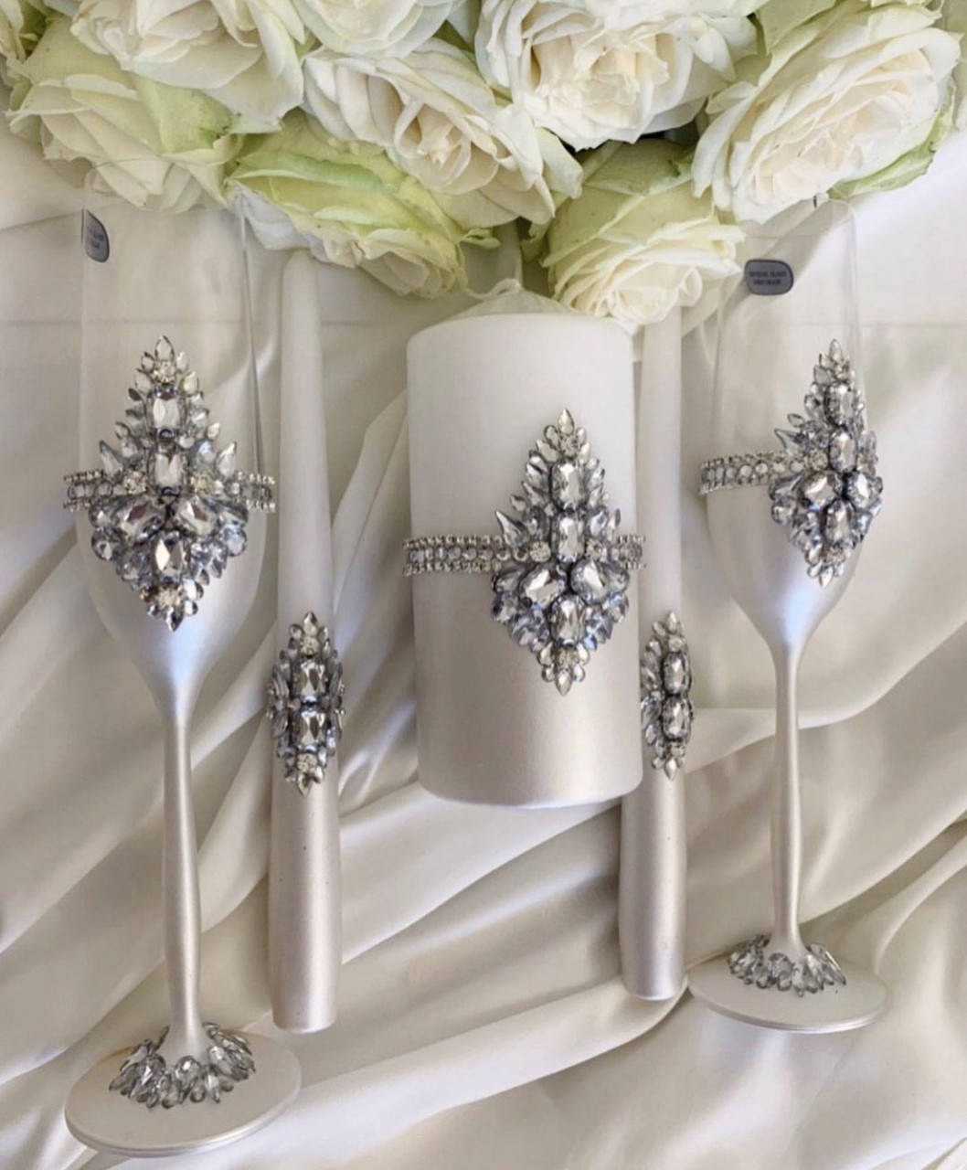 Данный набор возможно сделать в любом цвете - белый, айвори, жемчужный, пудра, персик, фиолетовый, сиреневый, изумруд.