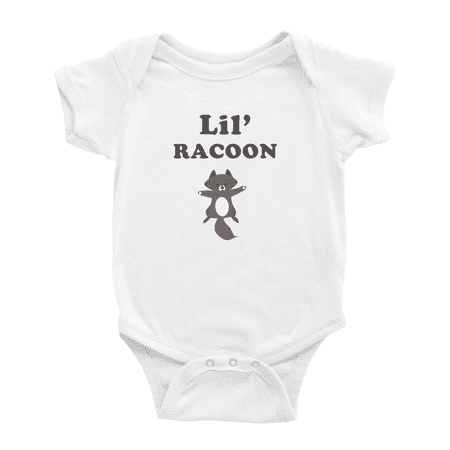 Cute Baby Jumpsuit Lil Racoon Animal Funny Boy & Gril Romper Bodysuit (White 0-3 Months