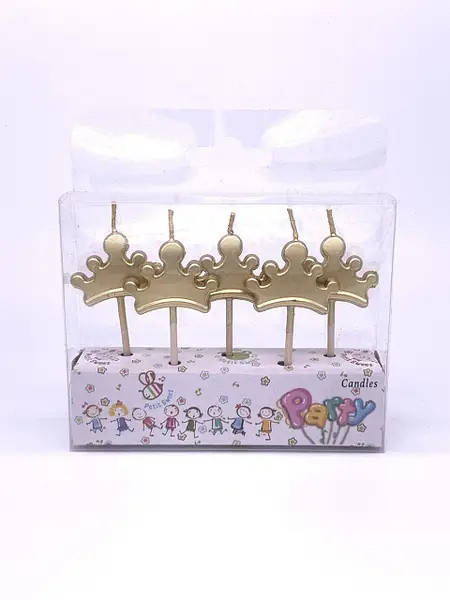 Набор свечей на торт "Короны" (5 шт.) золото, Бордовый