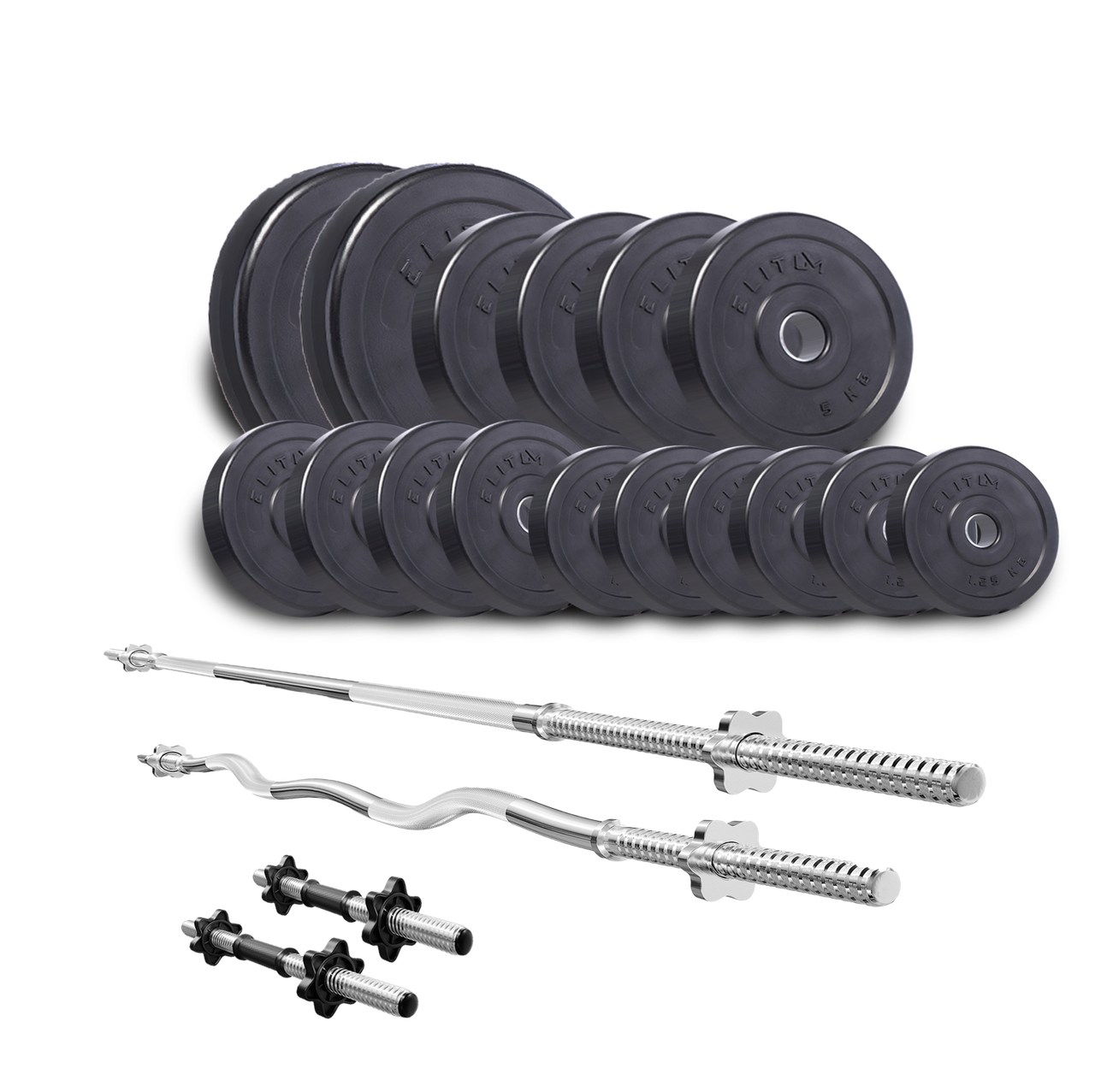Набор силовой штанга и гантели Elitum Titan 74 кг с прямым и W-образным грифом + 2 гантельных, Черный