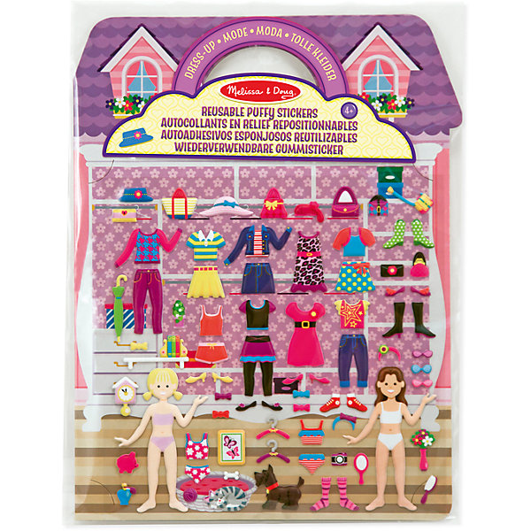 Великолепный подарок для любой девочки – это Набор со стикерами и фоном "Магазин одежды", Melissa & Doug (Мелисса и Даг), который представляет собой 4 глянцевых фона и 76 объемных наклеек, в том числе 2 куколки, элементы их гардероба, аксессуары, домашние животные. Можно организовать самый настоящий магазин одежды и примерять всевозможные наряды, обувь, сумочки. Одевайте куклу и создавайте наряд ее мечты, а также заполняйте шкафы одеждой с помощью наклеек из набора. Наклейки легко и удобно наносятся, их можно многократно использовать, придумывая различные сюжеты из жизни подружек. А мебель и очаровательные животные, которые можно прикреплять к фону с изображением комнат и сада, добавят еще больше интереса в игру. Набор развивает творческие способности, фантазию и воображение, мелкую моторику и сенсорное восприятие.