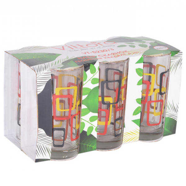 Набор стаканов Vittora Геометрия квадрат 6 шт 230 мл VT-5230/3, Прозрачный