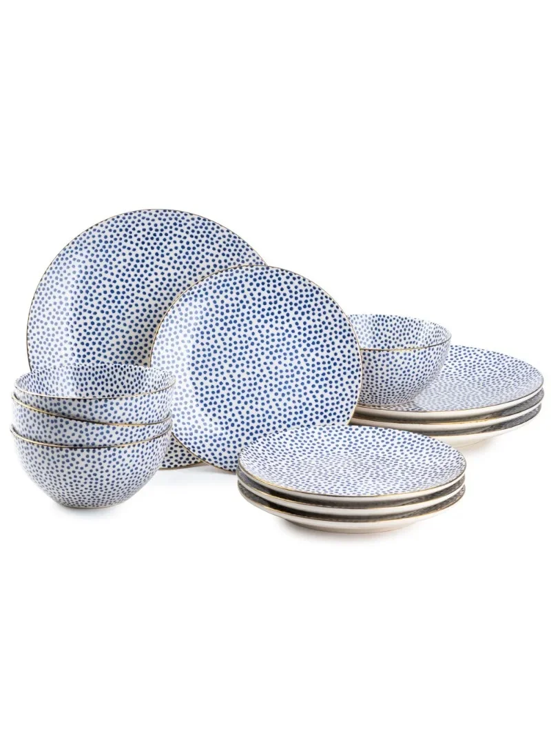 Набор столовой посуды с чамьяном и синими точками из 12 предметов