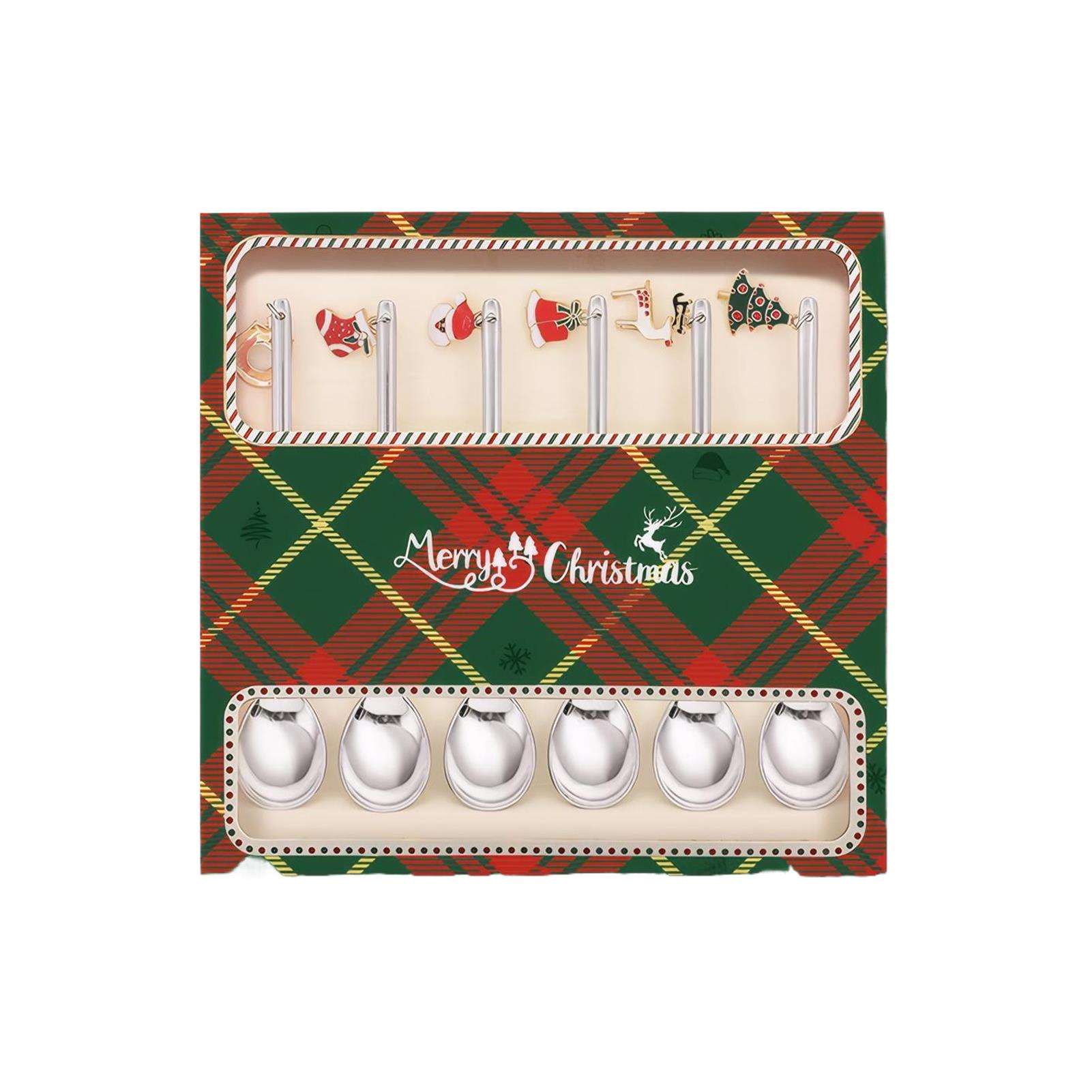 Набор столовых приборов из нержавеющей стали: нож, вилка, ложка. Прочный. Рождественская посуда в подарок и деревья, олени.