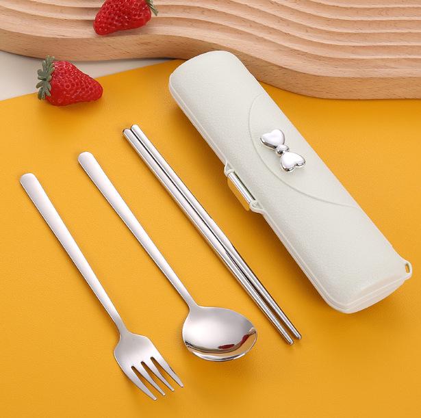 Набор столовых приборов из нержавеющей стали Simplicity Chopsticks Spoon Fork Suit Outdoor Portable Travel Cutlery Kawaii Cute Bow Cutlery Box белый