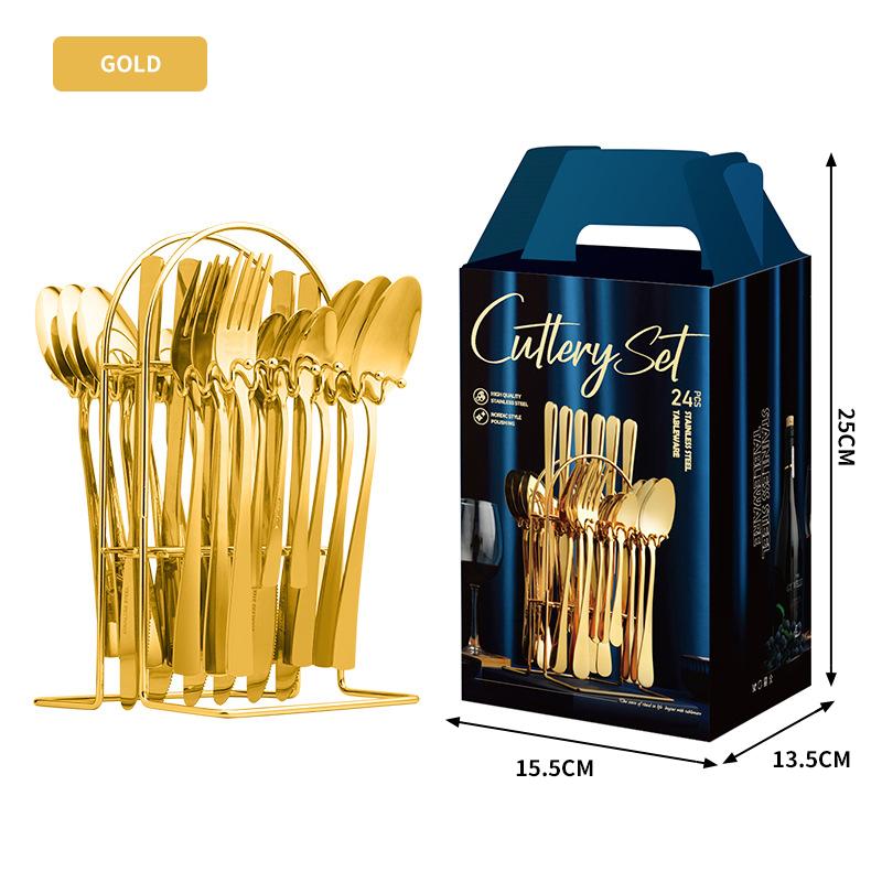 Набор столовых приборов из серебра 24 шт., столовые приборы из золота, набор на 6 персон с подставкой, включая нож, вилку, ложку, можно мыть в посудомоечной машине золотой