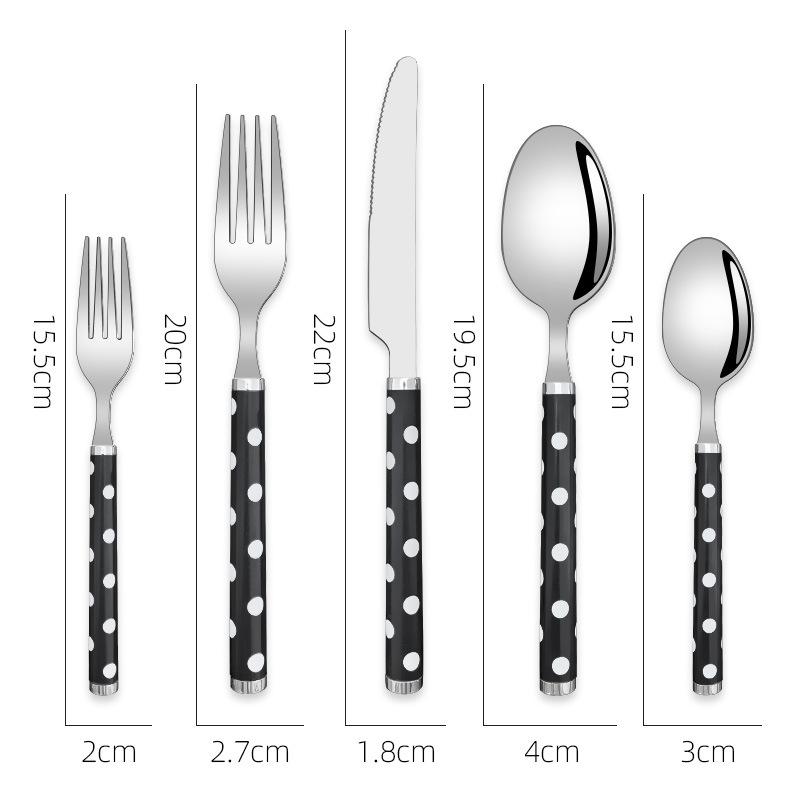 Набор столовых приборов из 20/30 предметов, нержавеющая сталь, пластик, ручка в горошек, столовые приборы, нож, вилка, ложка, можно мыть в посудомоечной машине 4 set чёрный