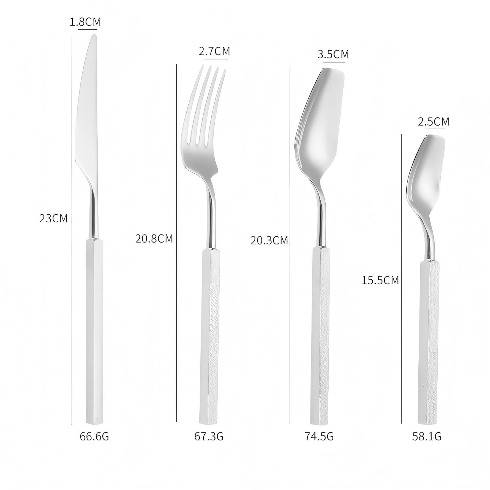 Набор столовых приборов класса люкс из 4 предметов, западная нержавеющая сталь, позолоченная столовая посуда, квадратная ручка, нож, вилка, ложка, можно мыть в посудомоечной машине серебряный