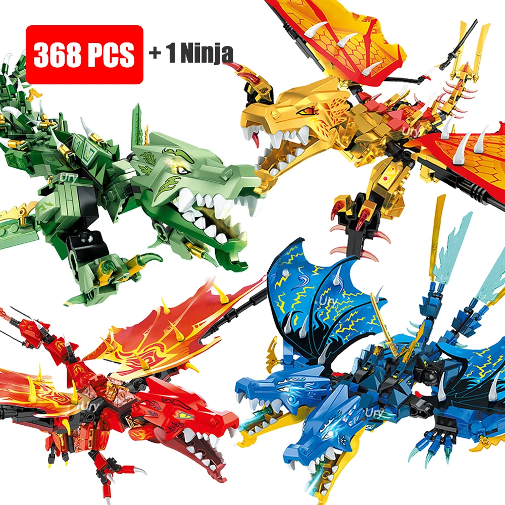Набор строительных блоков ниндзя из фильма «Золотой летающий дракон» с двумя головками красные синие зеленые фигурки истребителей Игрушки для мальчиков подарок на Рождество