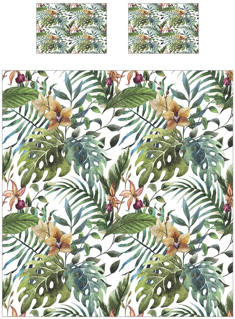 набор текстиля для спальни, жаккард (полиэстер), белый/зеленый