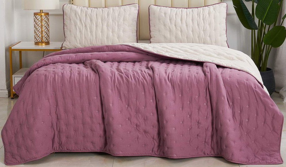 набор текстиля для спальни (классический), 160x220, 300 г/м², микрофибра (полиэстер), полиэстер (100%), бежевый/сиреневый