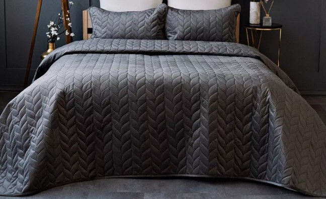 набор текстиля для спальни, 240x260, бархат/велюр, бархат, велюр, серый