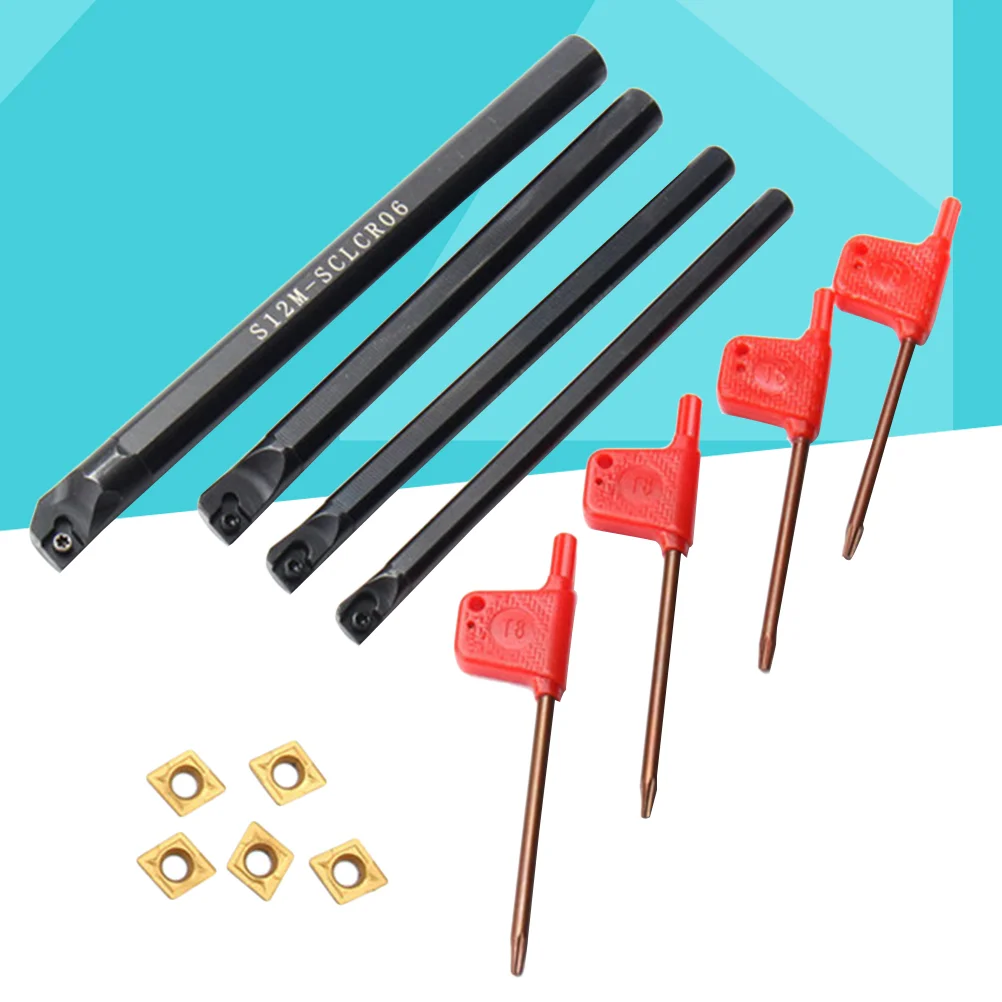 Набор токарных инструментов SCLCR06, комплект из 4 насадок 7 8 10 12 мм, 5 Вставок CCMT0602, 4 гаечных ключа для токарного станка