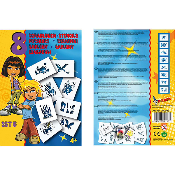 Трафареты подходят для декорирования тетрадей, создания приглашений, открыток и картин. Набор сочетается с фломастерами-аэрографами Malinos. Работа с трафаретами развивает аккуратность, усидчивость и творческий взгляд.