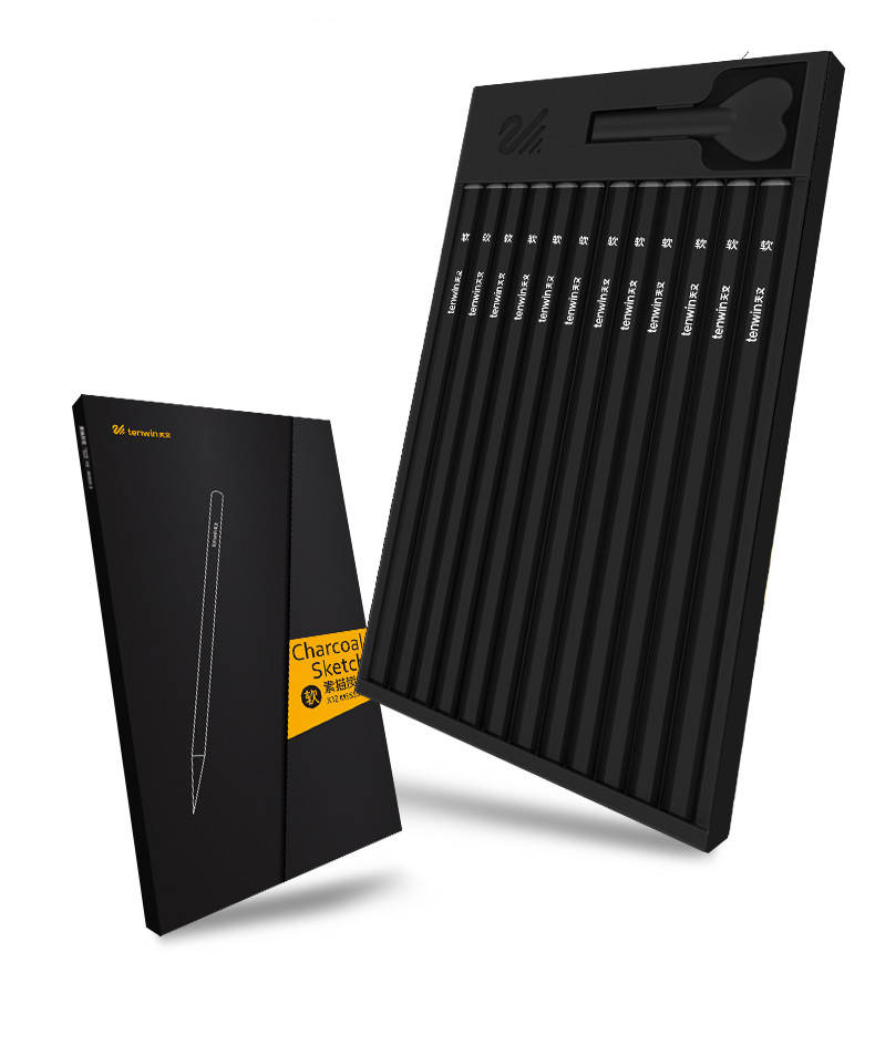 Набор угольных карандашей TENWIN средней твердости ( 12 штук), Черный