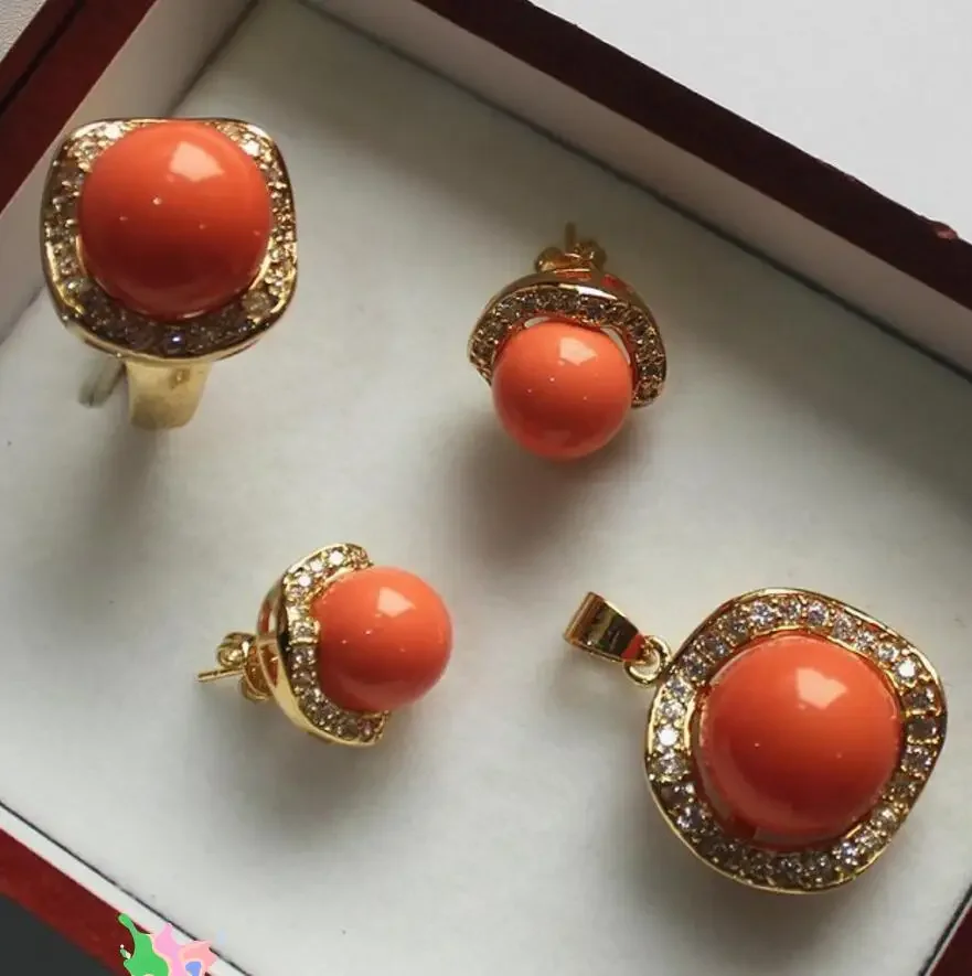 Набор украшений из жемчуга, кольца, подвесок и сережек-гвоздиков, 18KGP + 12-14 мм