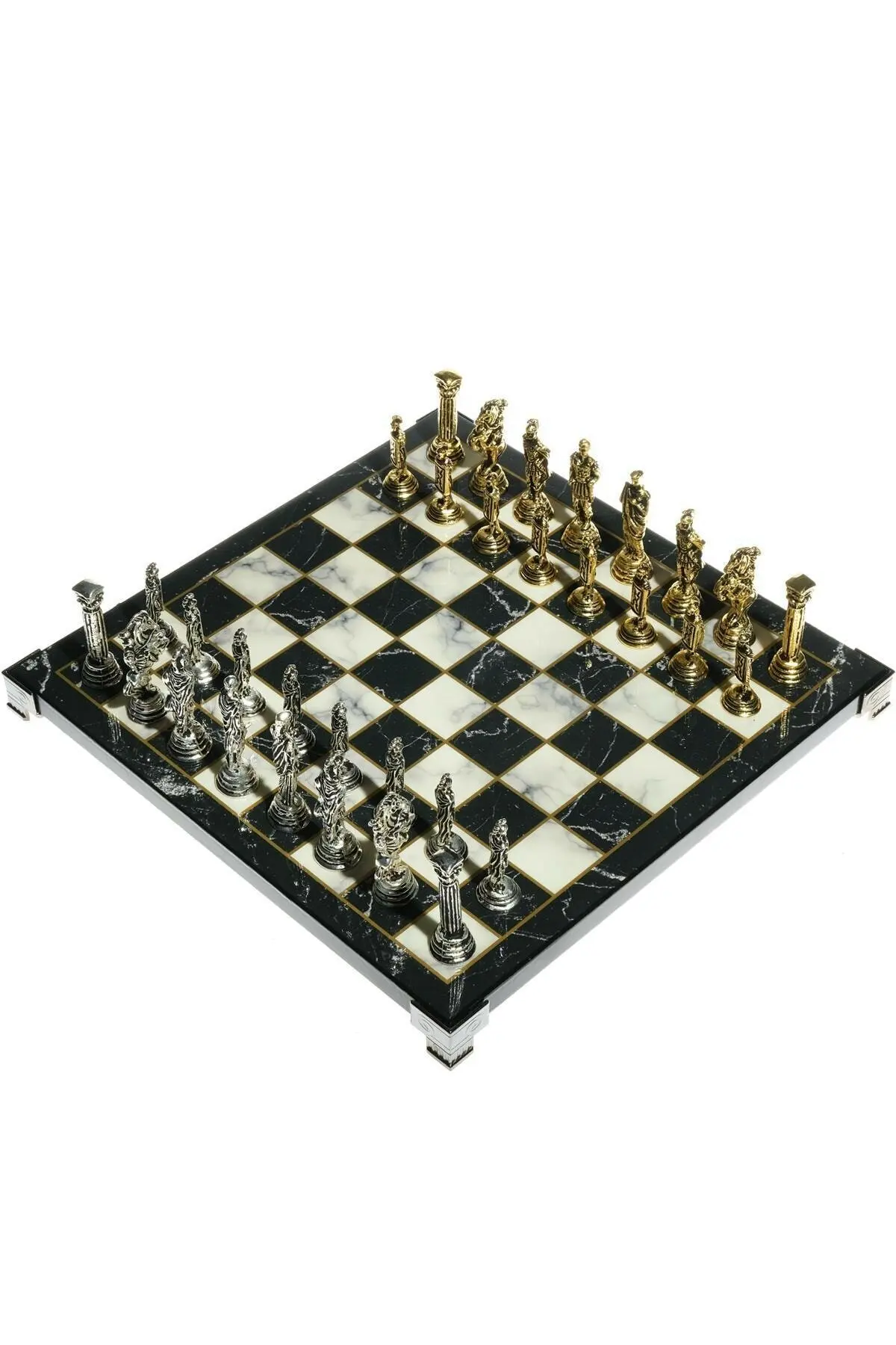 Набор фигурных шахматных фигурок «римский легион» с мраморным покрытием (27 см X 27 см)