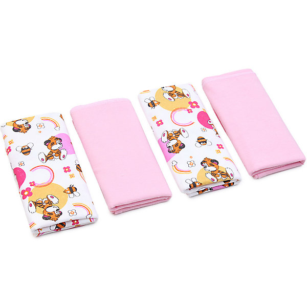 Набор фланелевых пеленок Letto, (75х100см), 4 шт., Розовый/белый