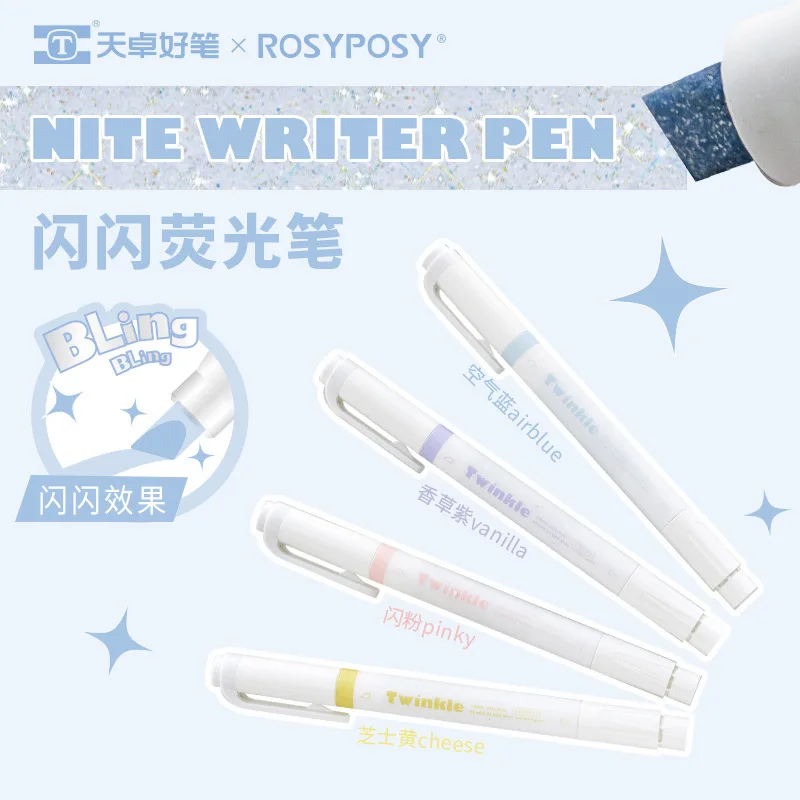 Набор флуоресцентных ручек со сверкающими звездами и речным глазом, 12 цветов