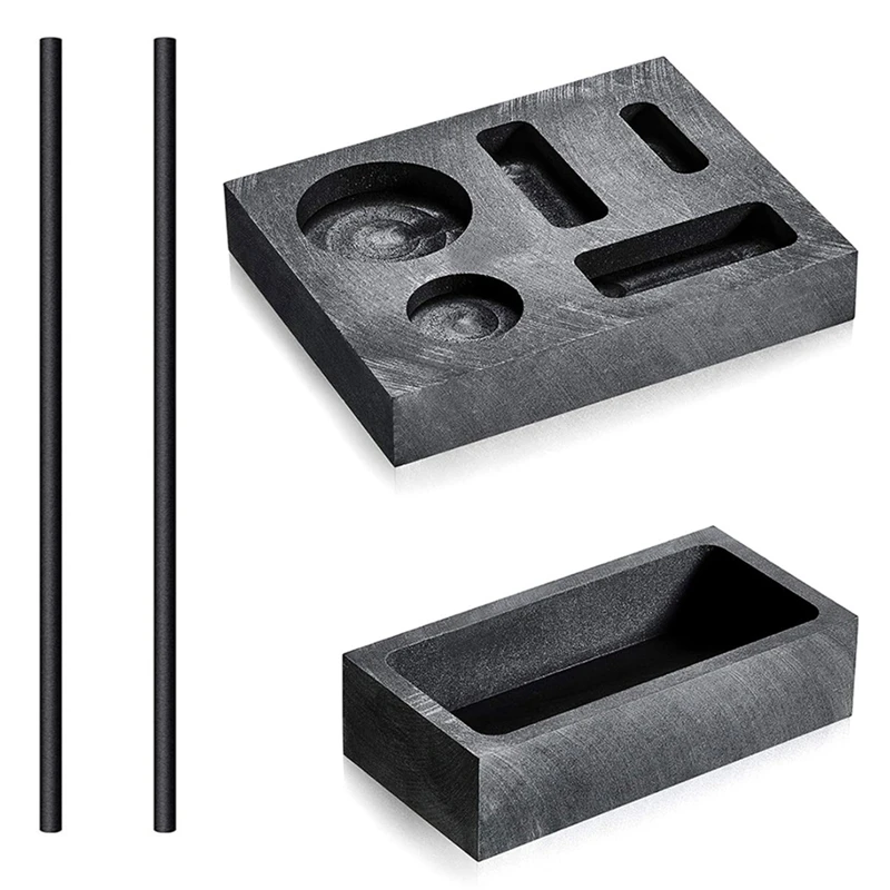 Набор форм для отлива графитового слитка 4 шт., форма 5 в 1 для отлива графитового слитка, форма для тигеля 1 кг, палочка для перемешивания 2 графитовых стержня для долговечного плавления