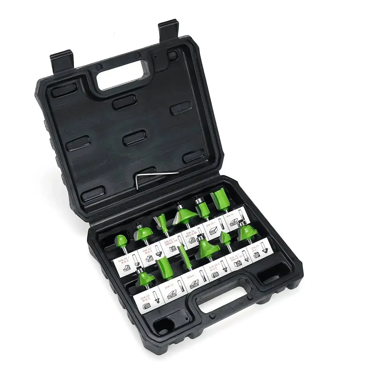 Набор фрез с хвостовиком 1/4 дюйма, твердосплавные инструменты для деревообработки, 12 шт. для домашнего ремонта, резка, обрезка по дереву