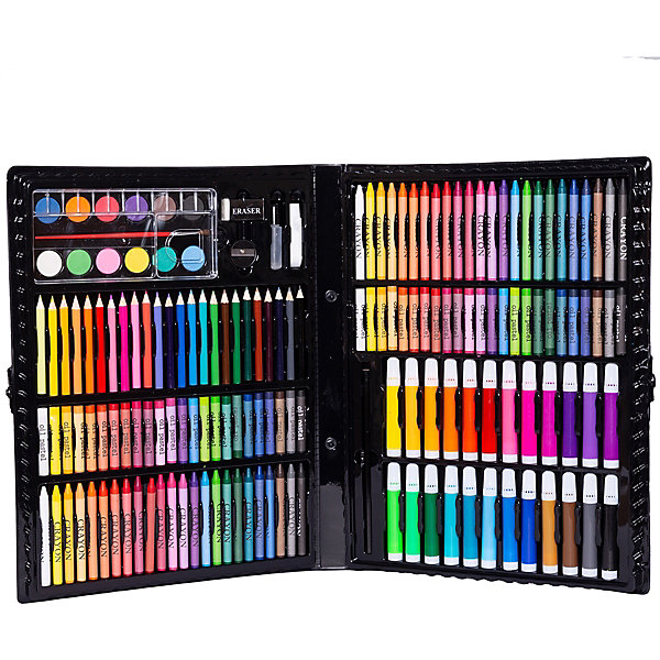 Набор из 168 предметов для творчества подойдет юным художникам как для занятий на уроках творчества, так и дома. Удобный кейс закрывается на кнопку и оснащен удобной ручкой для переноски.
