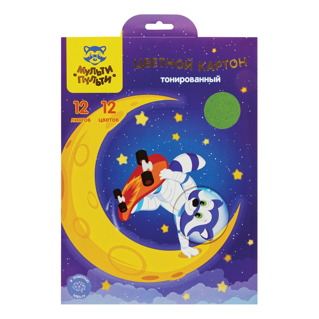 Набор цветного картона Мульти-пульти Енот в космосе КЦт12-12_44860 (12 цв)
