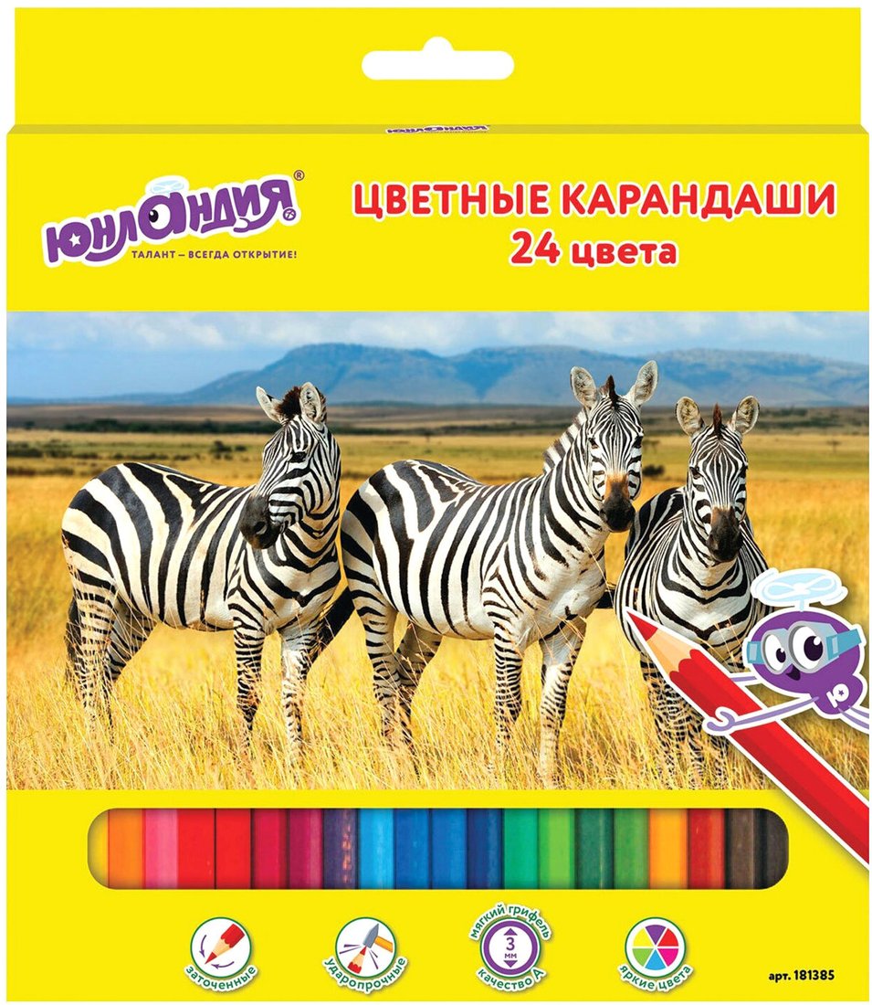 Набор цветных карандашей Юнландия Мир животных 181385 (24 цв)