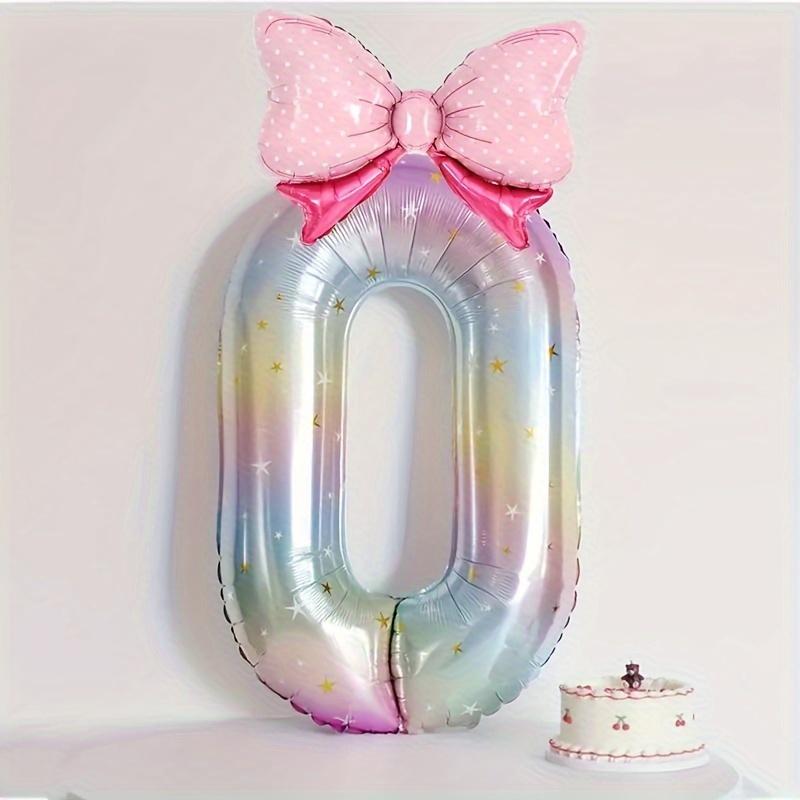 Набор цифровых шаров с радужным градиентом и мини-бантом - 40-дюймовые цифровые шары из фольги, подходят для украшения дня рождения 0