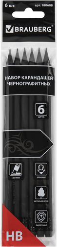 Набор чернографитных карандашей BRAUBERG Black Jack НВ, Арт. 180608, 6шт