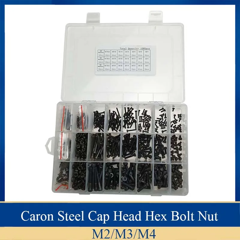 Набор черных гаек с шестигранной головкой из углеродистой стали, 1080 шт.
