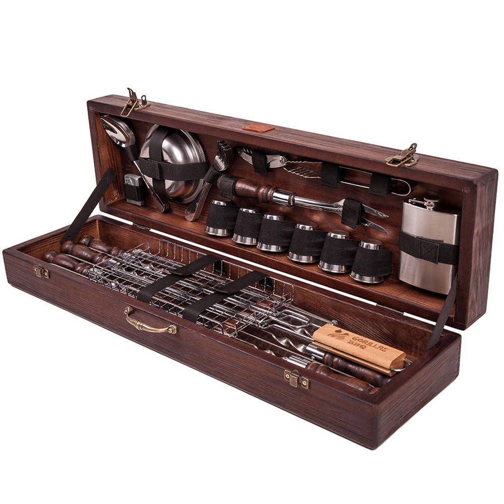 Набор шампуров - это идеальный подарок для настоящего мужчины! Набор состоит из 37 предметов. Все самое необходимое для приготовления разных блюд на костре. Такой набор так же станет отличным подарком для ваших родных, близких, друзей или коллег по работе.