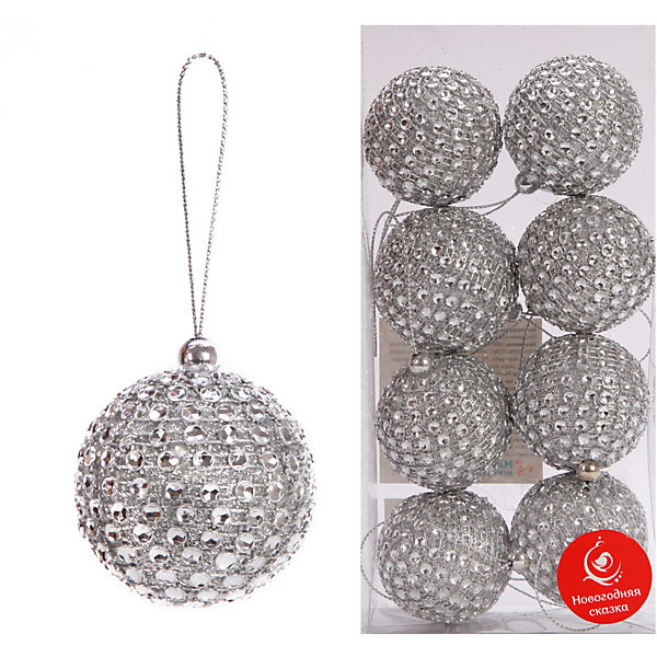 Набор шаров Новогодняя сказка серебро 8 шт., 5 см, Разноцветный, Набор шаров Новогодняя сказка серебро 8 шт., 5 см