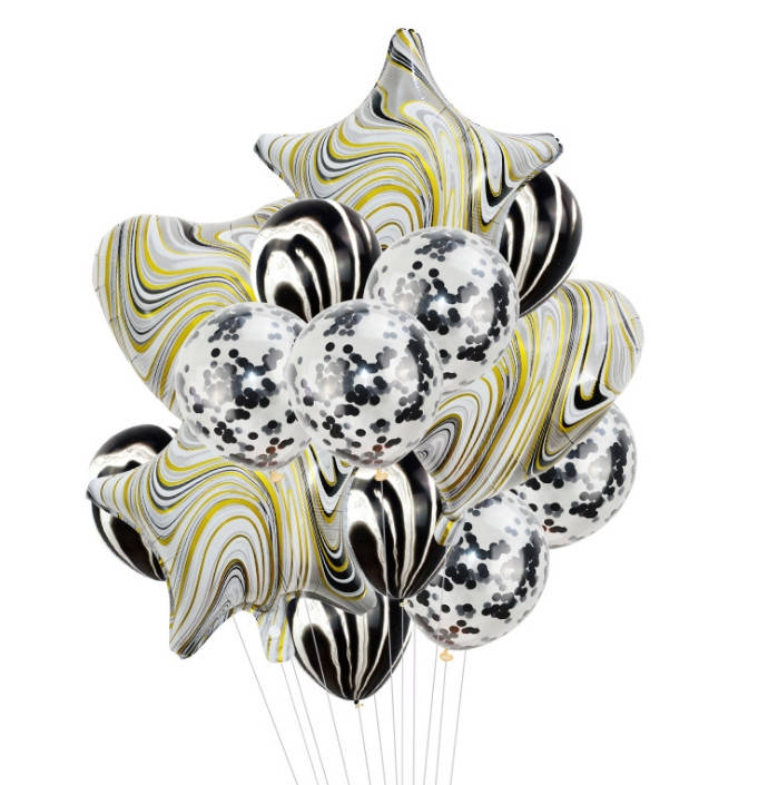 Набор шаров агат с конфетти чёрный, 14 шт, Разные цвета