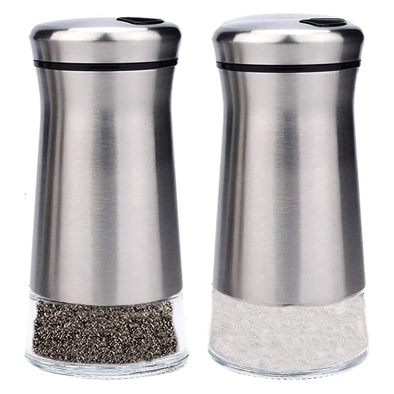 Набор шейкеров для соли и перца из нержавеющей стали со стеклянным дном и регулируемыми отверстиями для выпечки для дома и ресторана
