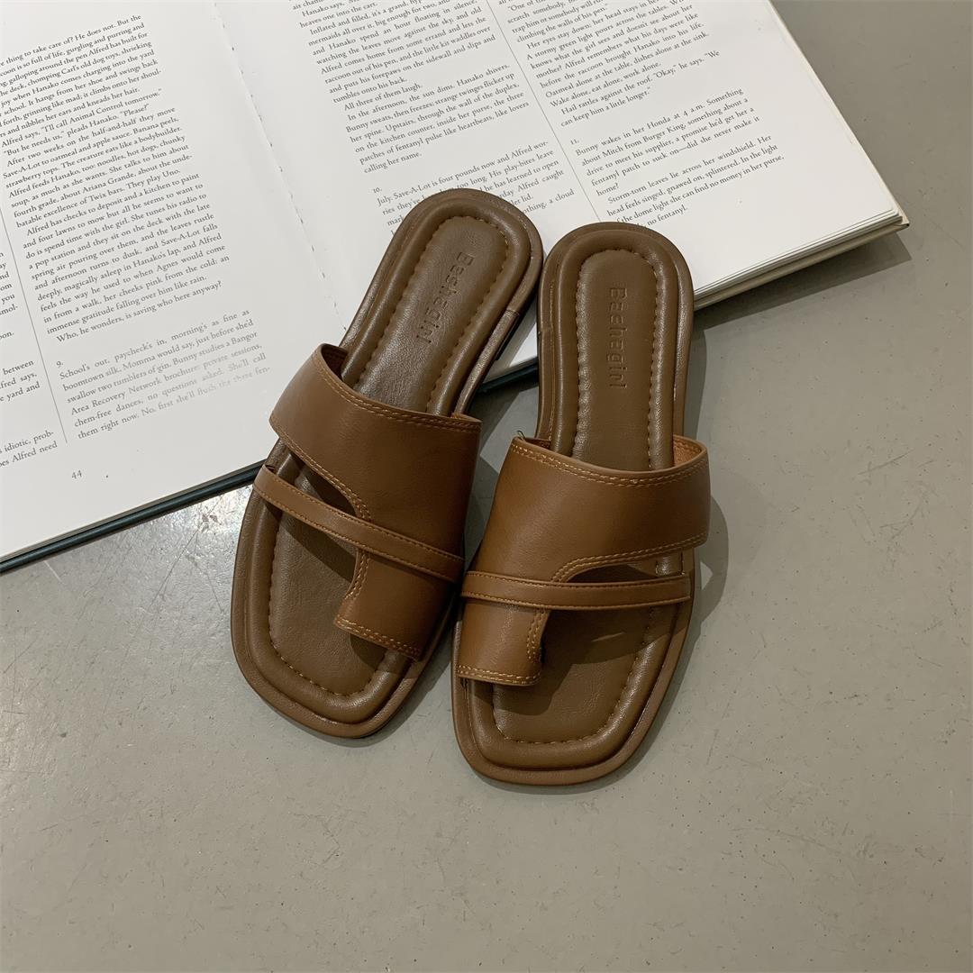 Набор шлепанцев с пальцами Летние женские сандалии Шлепанцы Толстая подошва Мягкие кожаные шлепанцы Новый ретро стиль Модные пляжные шлепанцы 39 коричневый