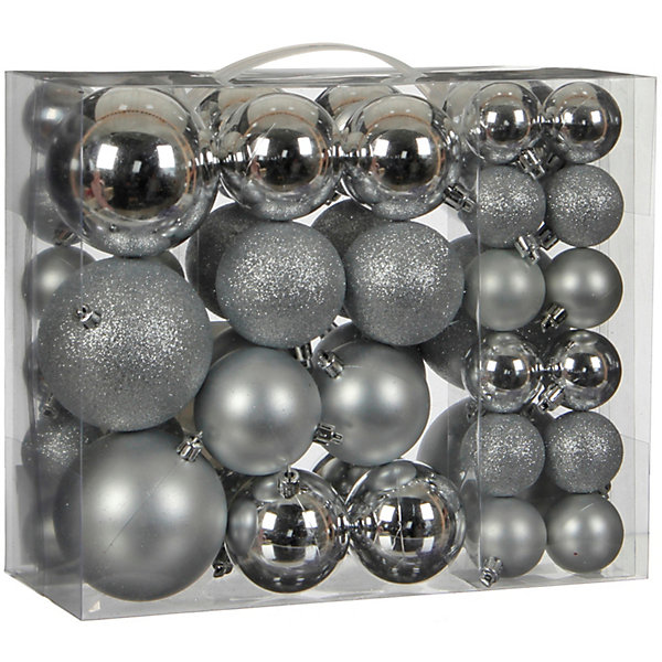 Набор ёлочных шаров House of Seasons 46 шт., серебряные, Серебряный, Набор ёлочных шаров House of Seasons 46 шт., серебряные
