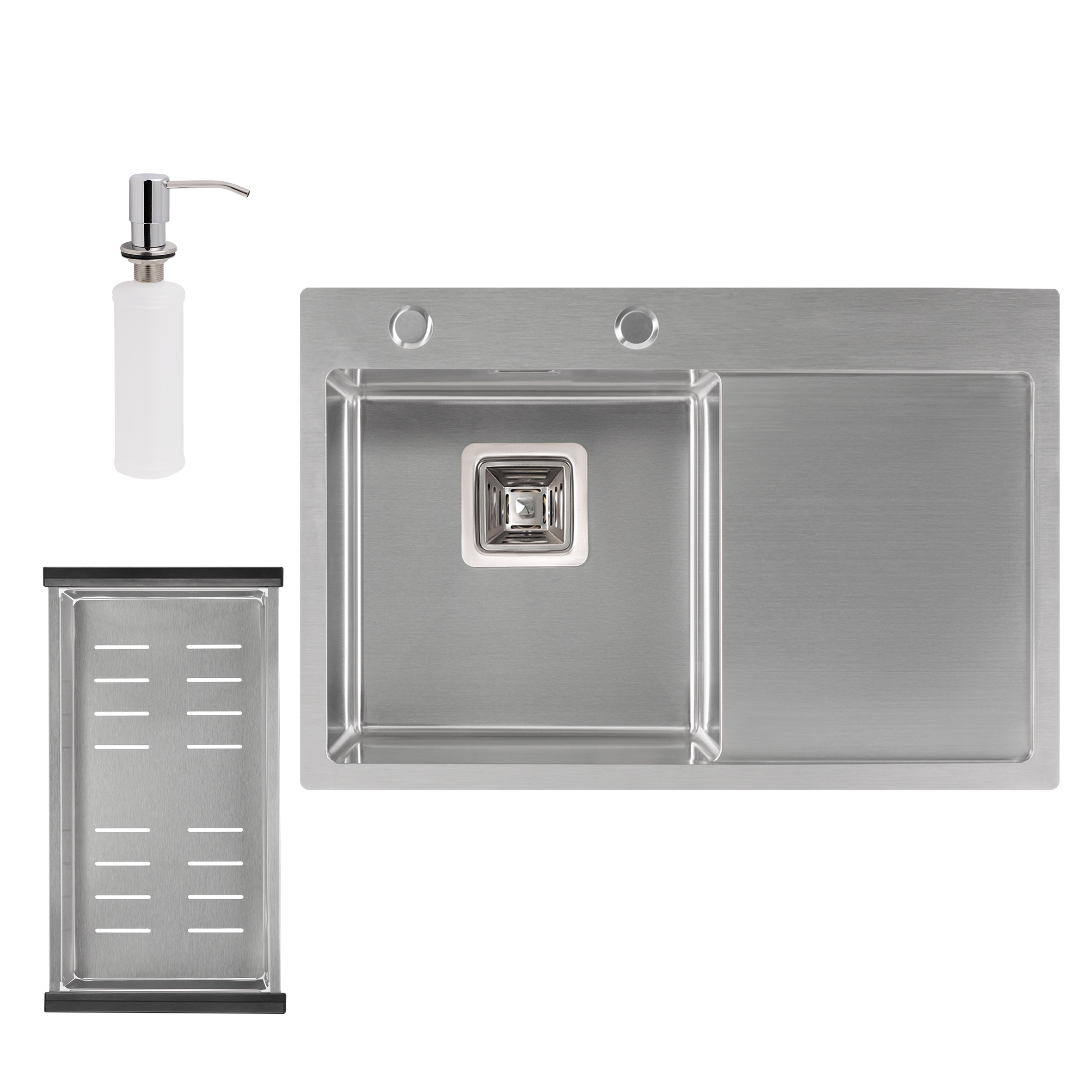Набор 3 в 1 Qtap кухонная мойка DK6845L 3.0/1.2 мм Satin + сушилка + дозатор для моющего средства