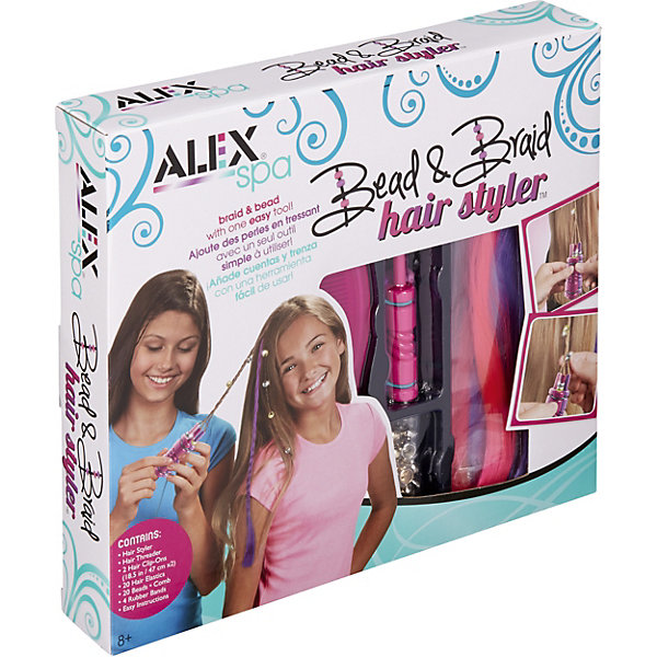 • в наборе: устройство для заплетания, нить для волос, 2 накладные пряди волос, 4 резинки, 20 бусин, расческа, инструкция