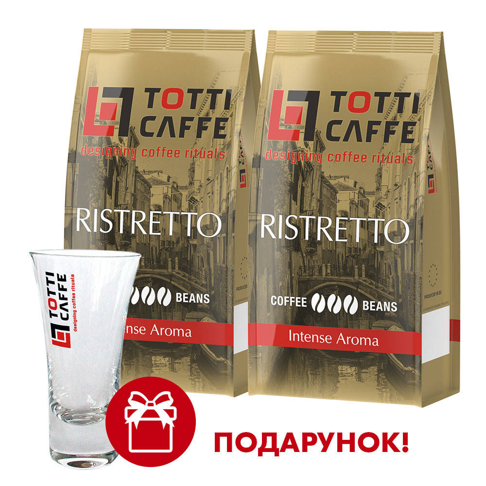 Набор TOTTI Caffe Кофе в зернах Ristrettо 1 кг х 2 шт + Стакан 110 мл