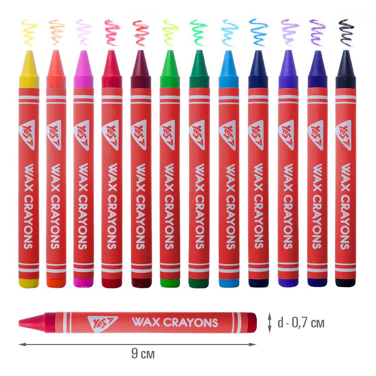 Воскові олівці мають справжній «кремовий» ефект м‘якого малювання. Колір лягає на папір рівним шаром, не збігаючись у грудочки. Залежно від сили натиску можна отримати легке штрихування або насичений «сильний» колір. З восковими олівцями дитина із задоволенням буде займатися творчістю, розвивати дрібну моторику, уважність і посидючість. З користю проводити час - з батьками або однолітками. У наборі - 12 шт.