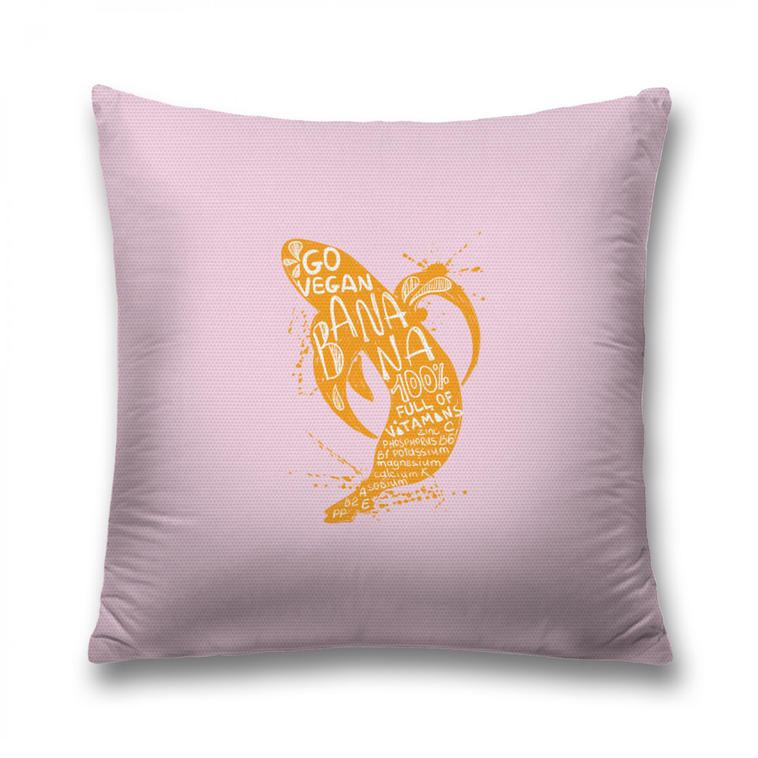 Наволочка декоративная JoyArty "Полезный банан" на молнии, 45x45 см, Розовый, Полезный банан