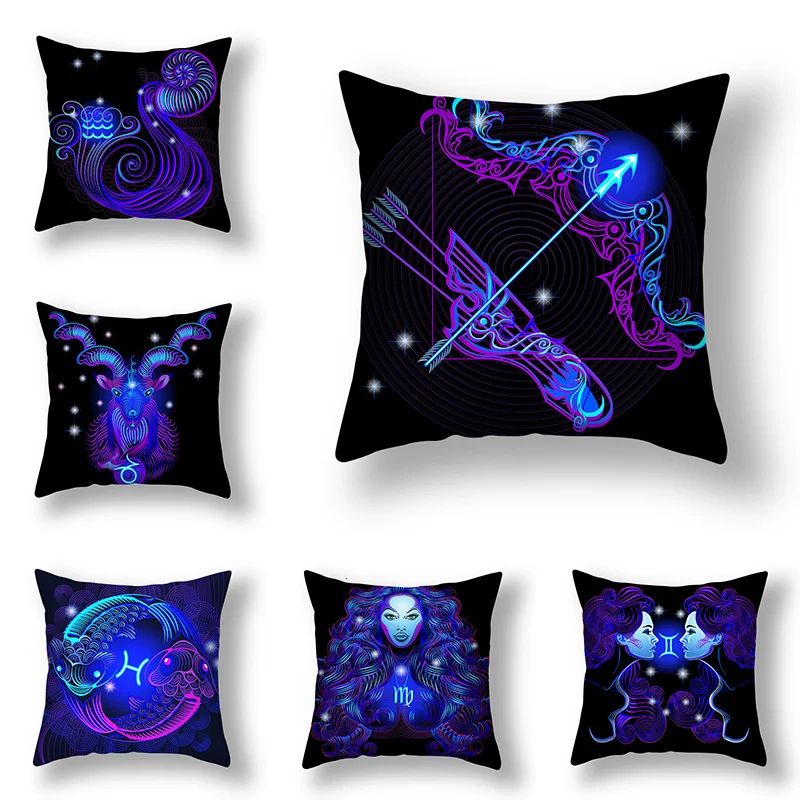 Наволочка для подушки, 45x45 см, серия созвездий, Овен, дева, близнецы, декоративная наволочка для дивана, автомобиля
