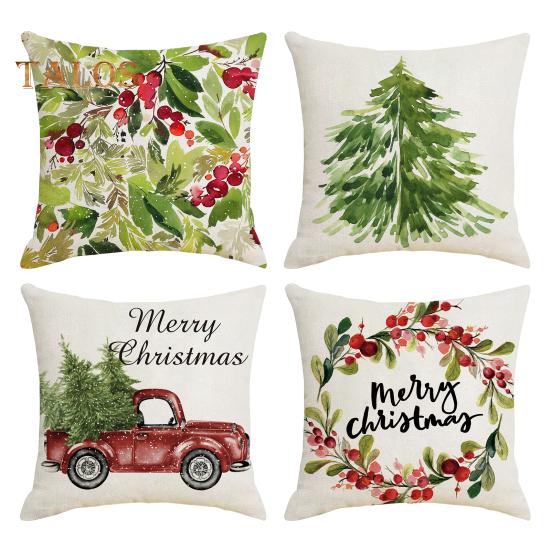 Наволочки с принтом листьев в рождественском стиле с потайной молнией для дивана, наволочка для подушки на Новый год, наволочка для офиса 45x45cm 4pcs