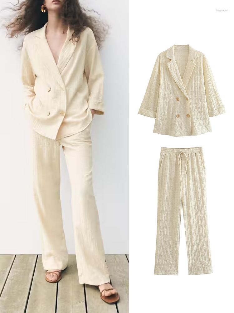 Women's Two Piece Pants Women's Blazer Set Woman 2 Pieces Suit 2023 Autumn Fashion Beige Sets Office Womens Outfits