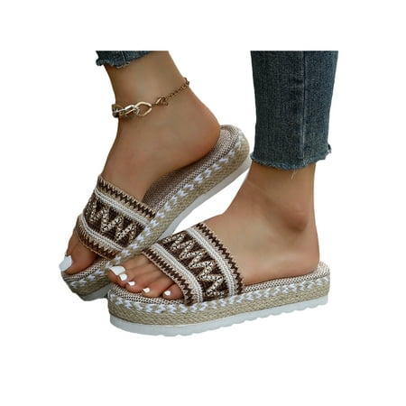 Daeful Womens Sandals Espadrille Platform Sandals Slip On Peep Toe Summer Slides Khaki 6.5