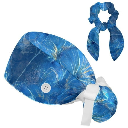 Working Cap with Buttons and Sweatband Scrub Hat Bouffant Caps with Scrunchie Abstract Flower Tie Back Hats